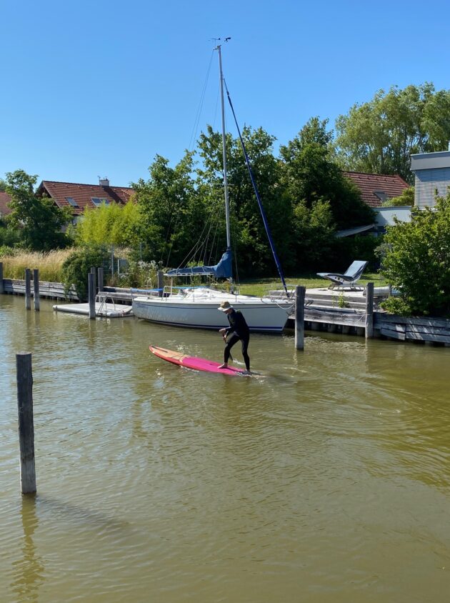 6.) TRÉNING CELÉHO TELA – Počas paddleboardingu zapájame aktívne nielen nohy, chrbát, brucho, ruky ale aj ramená a predlaktia. Jedná sa o veľmi komplexnú športovú aktivitu, pri ktorej zapájame a cvičíme veľa rôznych svalov nášho tela. Veľa krát som mal po 3 hodinovej plavbe so silným vetrom a vlnami na druhý deň neskutočne silnú svalovicu na bruchu, nohách a rukách. Ako človek vyvažuje svoje telo, aby nespadol do vody, nevedomky sa zohýba a robí ako keby brušáky + paddleboard sa kolíše vplyvom vĺn a silného vetra. Ruky z pádlovania dostávajú poriadne zabrať. Ja osobne nosím rukavice na dlhšie vzdialenosti, lebo som mával škaredé otlaky z toho nespočetného množstva záberov, do ktorých dávam pomerne dosť veľa sily. Nohy zohrávajú veľmi dôležitú úlohu. Vďaka nim sa držíme v vzpriamenom postoji počas silného vetra aj väčších vĺn. Nohy si odmakajú kvalitný tréning pri dlhších vzdialenostiach.